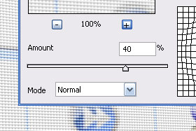 V novem oknu Amount določite na okoli 40 % in potrdite na gumb OK. Izberite orodje Rectangular Marquee Tool (bližnjica je tipka M) in označite del, ki bi ga radi izpostavili. Jaz sem označil celotni nepopačen del, saj mi ga je prej uporabljen filter malce "zmečkal". Kliknite zgoraj na Image in izberite Crop. |