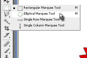 Držite z miško na orodju Rectangular Marquee Tool (bližnjica je tipka M) toliko časa, dokler se ne prikažejo ostala orodja. |