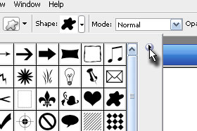Zgoraj v orodni vrstici določite Custom Shape Tool.