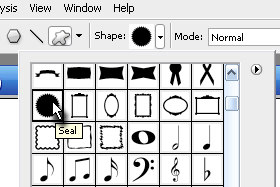 Kliknite ponovno na puščico navzdol pri polju Shape in označite obliko Seal (glej sliko).