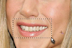 ![]() Z miško označite del obraza z zobmi (glej sliko). |