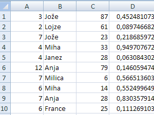 Predstavljajte si, da imate veliko število vrstic s podatki.