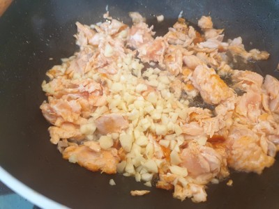 Dodajte k jedi še nasesekljan česen in premešajte. |