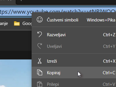 Odprite poljuben YouTube naslov in ga kopirajte.