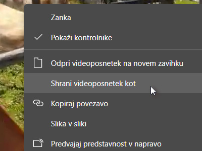 ![]() Kliknite na videoposnetek z desnim miškinim gumbom in izberite Shrani videposnetek kot. |