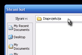 Odpre se okno z raziskovalcem, kjer prvo določite mapo, kjer boste shranili diaprojekcijo (glej sliko).