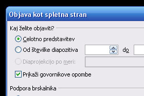 V novem oknu označite Celotno predstavitev.