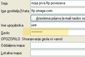 Jaz sem vpisal "moja prva ftp povezava". |