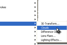 Potem pa kliknite zgoraj na Filter, Render in izberite Clouds.