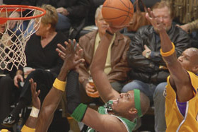 Jaz sem odprl fotografijo Paula Pierca, ki igra za moštvo Boston Celtics.