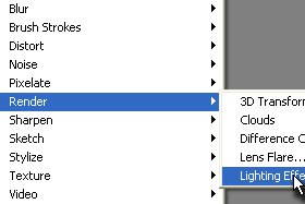 Potem pa kliknite zgoraj na Filter, Render in izberite Lighiting Effects.