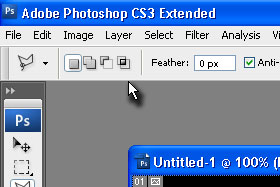 Izberite orodje Rectangular Marquee Tool in narišite pravokotnik (glej sliko) in ga z orodjem Paint Bucket Tool napolnite z črno barvo.