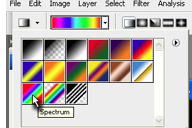 Nato izberite orodje Gradient Tool in izberite mavričen preliv (glej sliko).