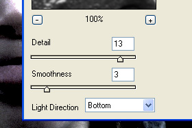 Odpre se novo okno. Detail določite 13, Smoothness 3 in Light Direction preko izbirnika določite Bottom in potrdite s klikom na Ok.