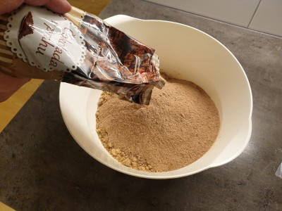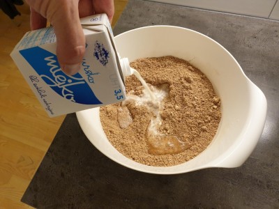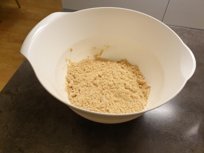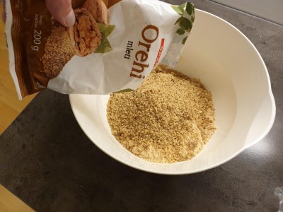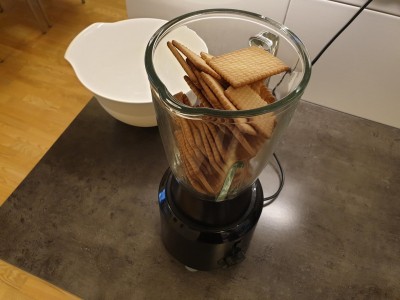 Potem pa vse te zmlete piškote postavite v večjo posodo. |