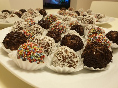 Kroglico povaljajte v poljuben posip, katerega imate v globljem krožniku in jo potem postavite v paprinat podstavek. Jaz sem uporabil tri različne posipe. Naj vam domišljija ustvari čim bolj raznolike čokoladne kroglice. Pa sladek tek vam želim. |