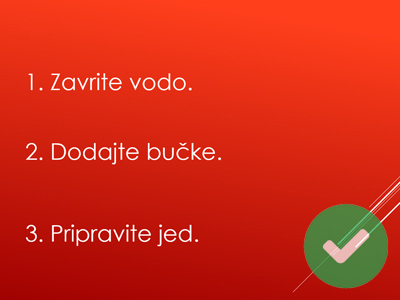 ![]() Vi ste predavatelj, zato prikažite le glavne točke, katere verbalno in z malo mimike občinstvu obrazložite. |