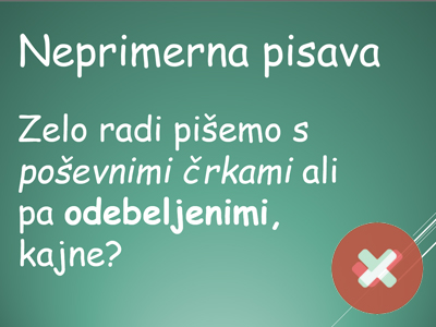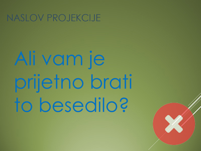 Najbolj pogosta napaka je veliko besedila, ki ga predavatelj bere.