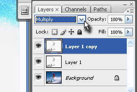 Določite dupliciranemu layerju senčenje na Multiply (glej sliko). |