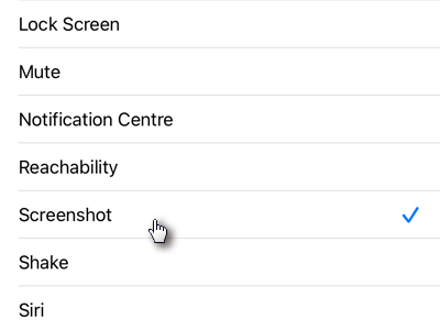 ![]() Jaz sem pri možnosti Double Tap izbral Screenshot, kar je v prevodu zajemanje zaslona. |