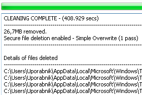 Izpiše se Cleaning complete in še enkrat se izpišejo brisane datoteke. |