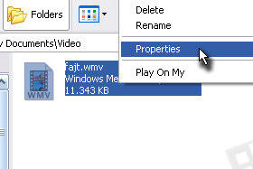 V raziskovalcu poiščite video posnetek, ki ga boste obdelali in kliknite nanj z desnim miškinim gumbom ter izberite Properties (Lastnosti).