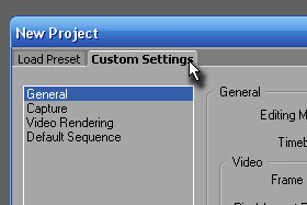 V oknu z lastnostmi projekta, kliknite na zavihek Custom Settings.