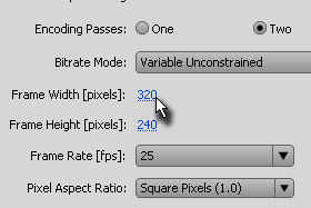 Encoding Passes označite Two in v polje Frame Width in Frame Height ponovno vpišite podatke, ki ste jih dobili na začetku lekcije.