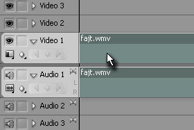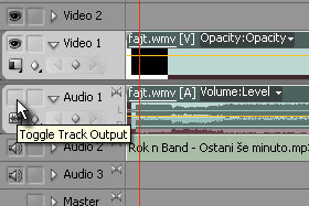 Kliknite na ikonico z zvočnikom pri vrstici Audio 1 (glej sliko), da izklopite zvok. |