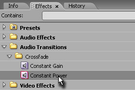 V polju Effects kliknite na Audio Transitions in držite z miško Constant Power... |