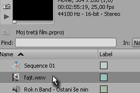 ...in ga potegnite v polje Timeline, točneje v vrsto Video 1 (glej sliko).