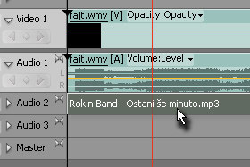 ...in jo premaknite v polje Timeline, točeneje v vrstico Audio 2 (glej sliko).