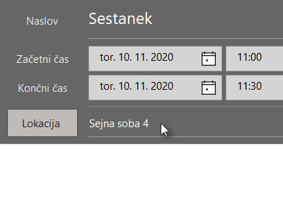 ![]() V novem oknu najprej določite naslov, čas in lokacijo sestanka. |