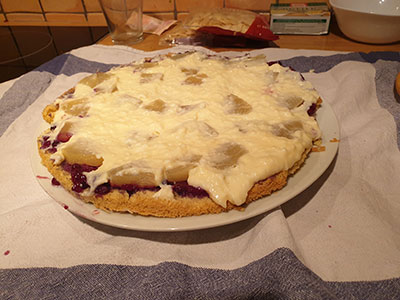 Prelijte vse skupaj z prej ohlajeno pripravljeno kremo. |