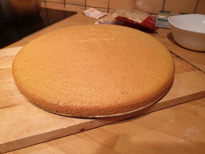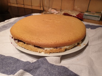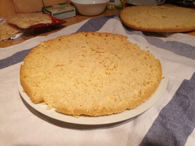 Pokrijte z drugim delom biskvita. |