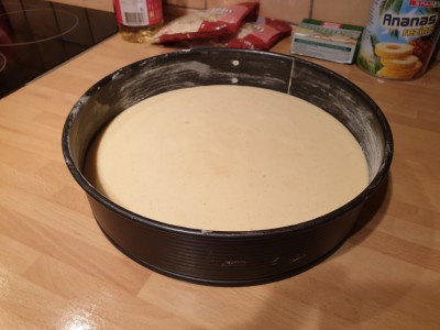 Maso prelijte v pekač, katerega prej obdajte z moko, da se masa ne zalepi. Namesto moke lahko uporabite tudi maslo. |