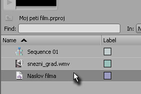 Opazili boste novo ustvarjeni napis poleg video posnetka, ki ste ga prej uvozili (glej sliko).