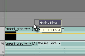 Napise, ki ste jih prej dodali, lahko sedaj z miško raztegnete in jim tako omogočite daljšo predvajanje ob video posnetki (glej sliko).