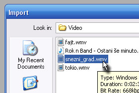 V oknu z raziskovalcem označite poljuben video posnetek ter s klikom na gumb Open potrdite uvoz videa v projekt.