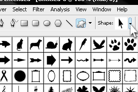 Izberemo orodje Custom Shape Tool.