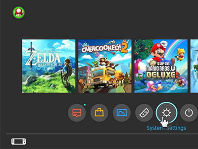 V glavnem meniju v Nintendo Switch odprite System Settings.