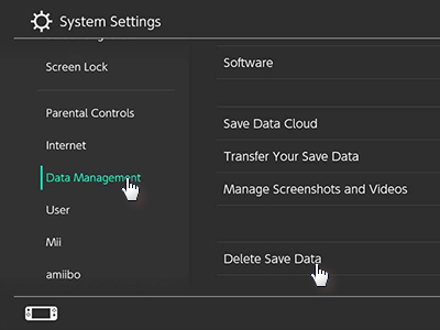 ![]() Izberite Delete Save Data for Switch. |