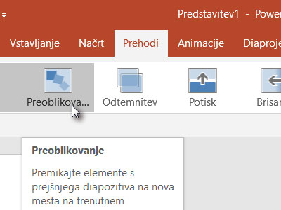 ![]() Diapozitiv ste podvojili. Če želite, da bo prehod deloval, mora biti na obeh diapozitivih isti objekt. |