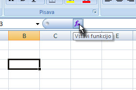 Označite sedaj neko poljubno prazno celico in kliknite v polje za ročno vstavljanje funkcije (glej sliko).