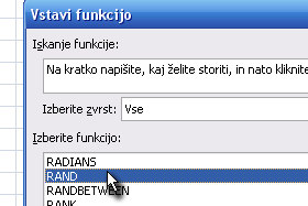 Izberite zvrst preko izbirnika določite Vse in spodaj poiščite ter označite funkcijo RAND. Potrdite na gumb V redu. |