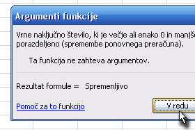 Ko se vam prikaže okno z argumenti funkcije, potrdite na gumb V redu.
