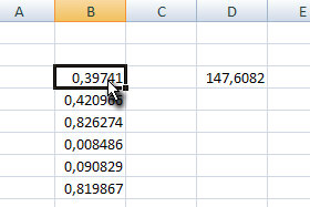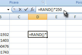 Potem pa vpišite =RAND()*250 in potrdite na tipko ENTER. |