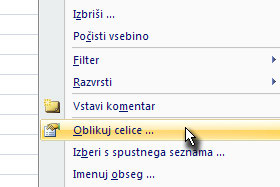 Kliknite nanjo z desnim miškinim gumbom in izberite Oblikuj celice ...