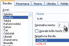 Pod Zvrst določite Številka in nato pri polju Decimalna mesta nastavite 2 ali poljubno.