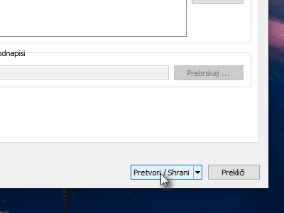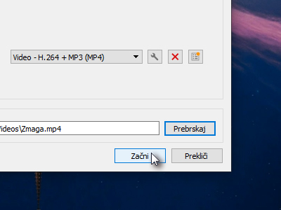 ![]() VLC bo začel s shranjevanjem. Čas shranjevanja je odvisen od dolžine vašega posnetka. Če se shranjevanje (predvajanje) ne začne, potem kliknite na gumb za predvajanje. |